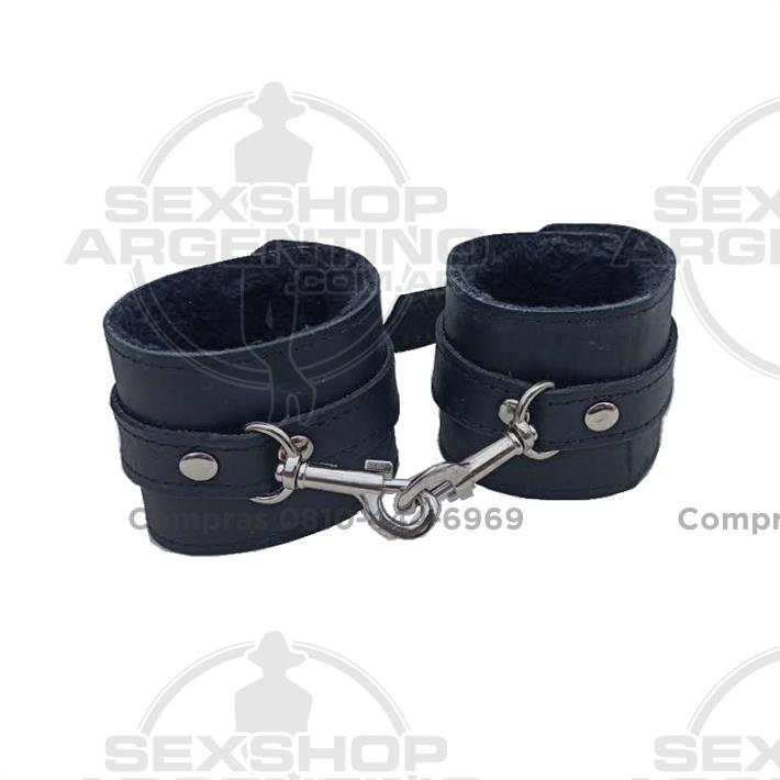 Cueros eróticos, Esposas de cuero - Esposas Negras Simples Con Mosqueton Y Peluche Negro